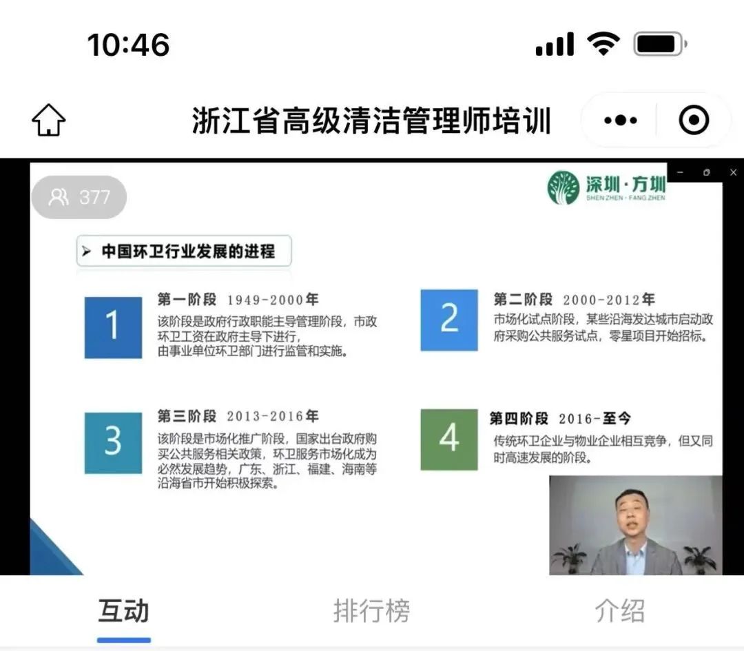 2022年10月20-21日,为满足疫情防控期间各会员单位的培训需求,提升项目经理技能水平,由浙江省清洗保洁行业协会主办、深圳方圳承办的浙江省中级/高级清洁管理师培训班在方圳直播间圆满收官。