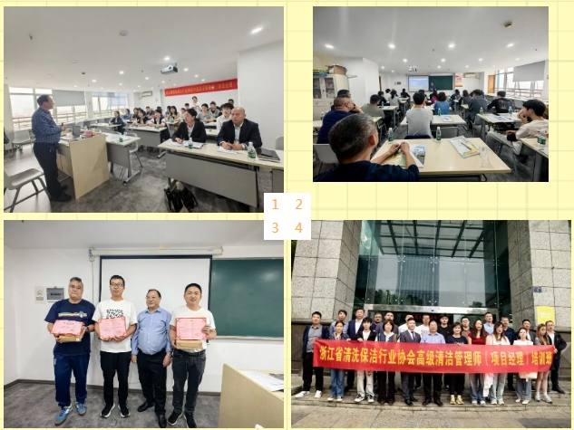 浙江省清洗保洁行业协会中/高级清洁管理师(项目经理)培训班:理论结合实践,打造高素质人才。2024年10月16日至17日,浙江省清洗保洁行业协会主办的中/高级清洁管理师(项目经理)培训班同样吸引了众多学员的参与。通过课堂讨论和实操演练,学员们不仅提升了专业技能,还获得了宝贵的实践经验。培训结束后,方圳清环智库研究院副院长周长学老师为优秀学员颁发了荣誉证书,以表彰他们在学习过程中的卓越表现。